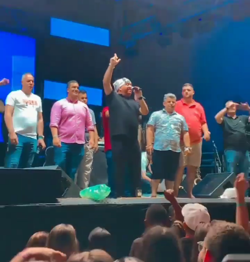 Ao fim do show Gustavo Feijó com a faca nos dentes declarou: ” eu queria deixar um recado aqui futebol se ganha no campo política se ganha no voto.