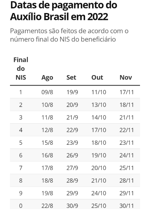 O governo federal vai iniciar o pagamento das parcelas de novembro do Auxílio Brasil na próxima quinta-feira (17).