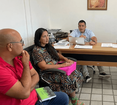 Nesta terça, dia 20 de dezembro, o prefeito Bruno Feijó esteve reunido com o vice Sérgio Salvador, a secretária de Educação Maria Isaura, o subsecretário Carpeggiani e a direção do Sinteal-BM na Prefeitura Municipal para determinar o pagamento de salários e outros benefícios aos servidores efetivos.